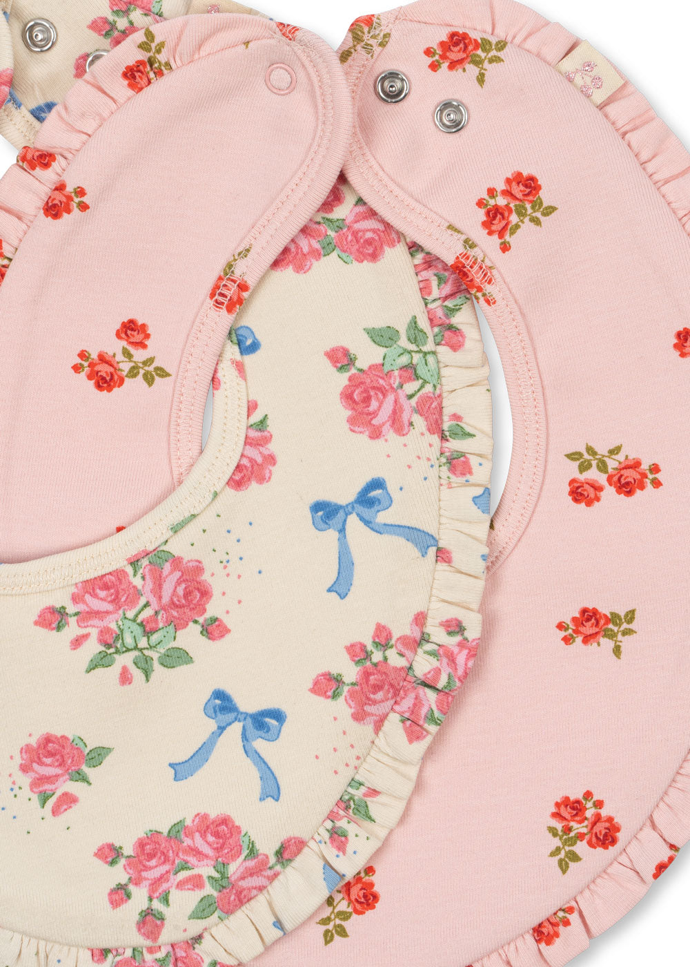 Set of two soft bibs with frill detailing. Designed with two adjustment levels for a comfortable fit.