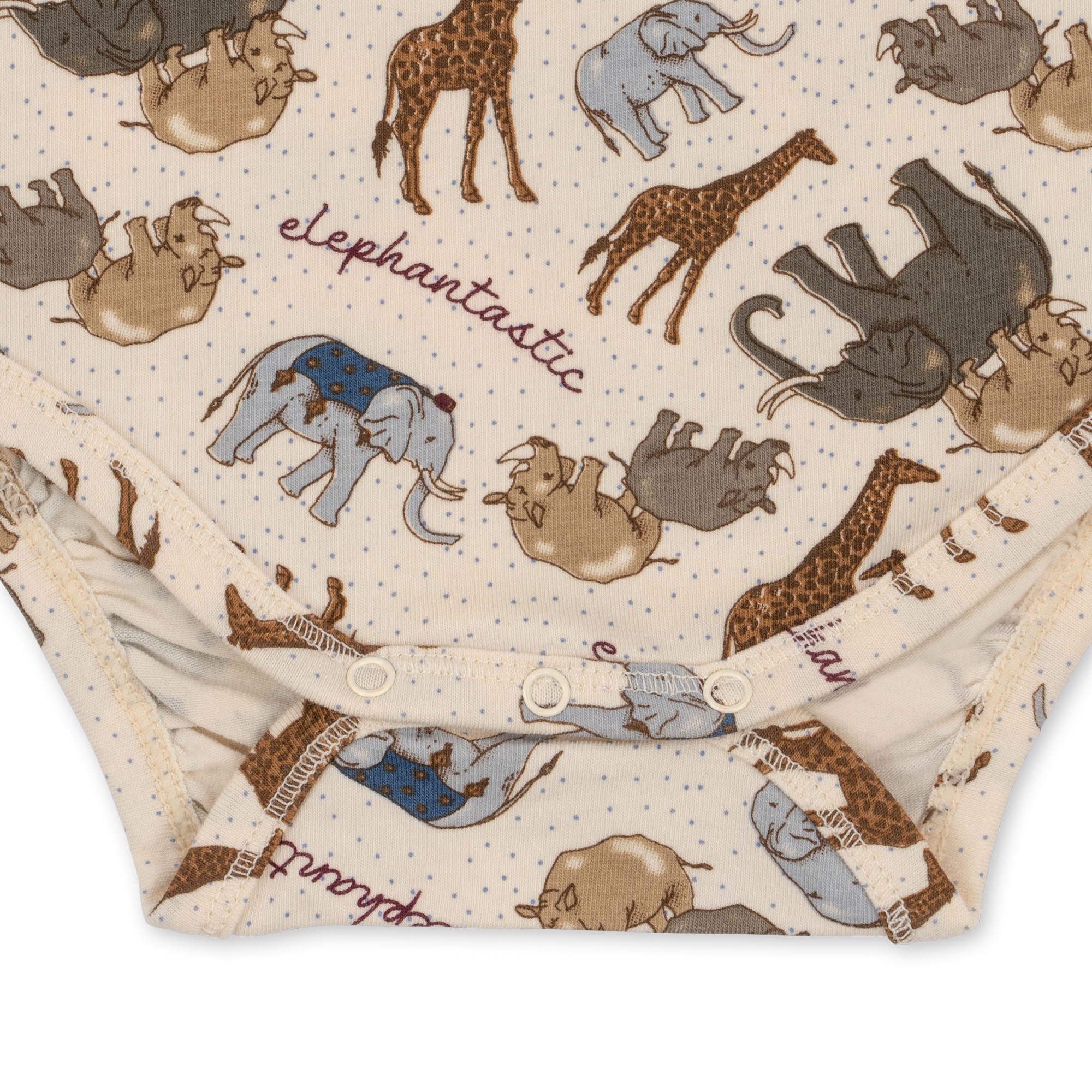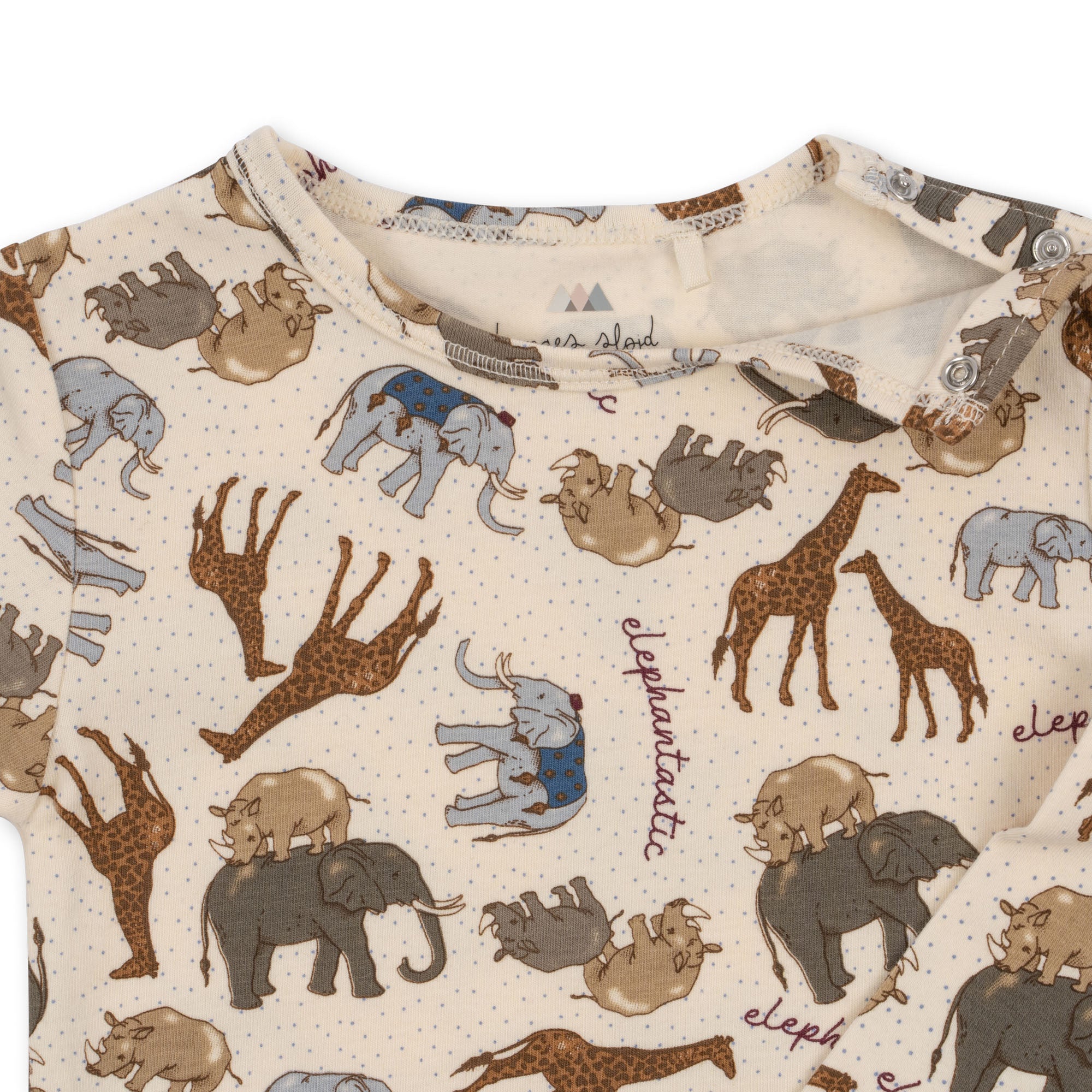 Soft long-sleeved body made from organic cotton mixed with elastane for durability and a hint of stretch. Designed with snap buttons at the crotch for easy dressing.
