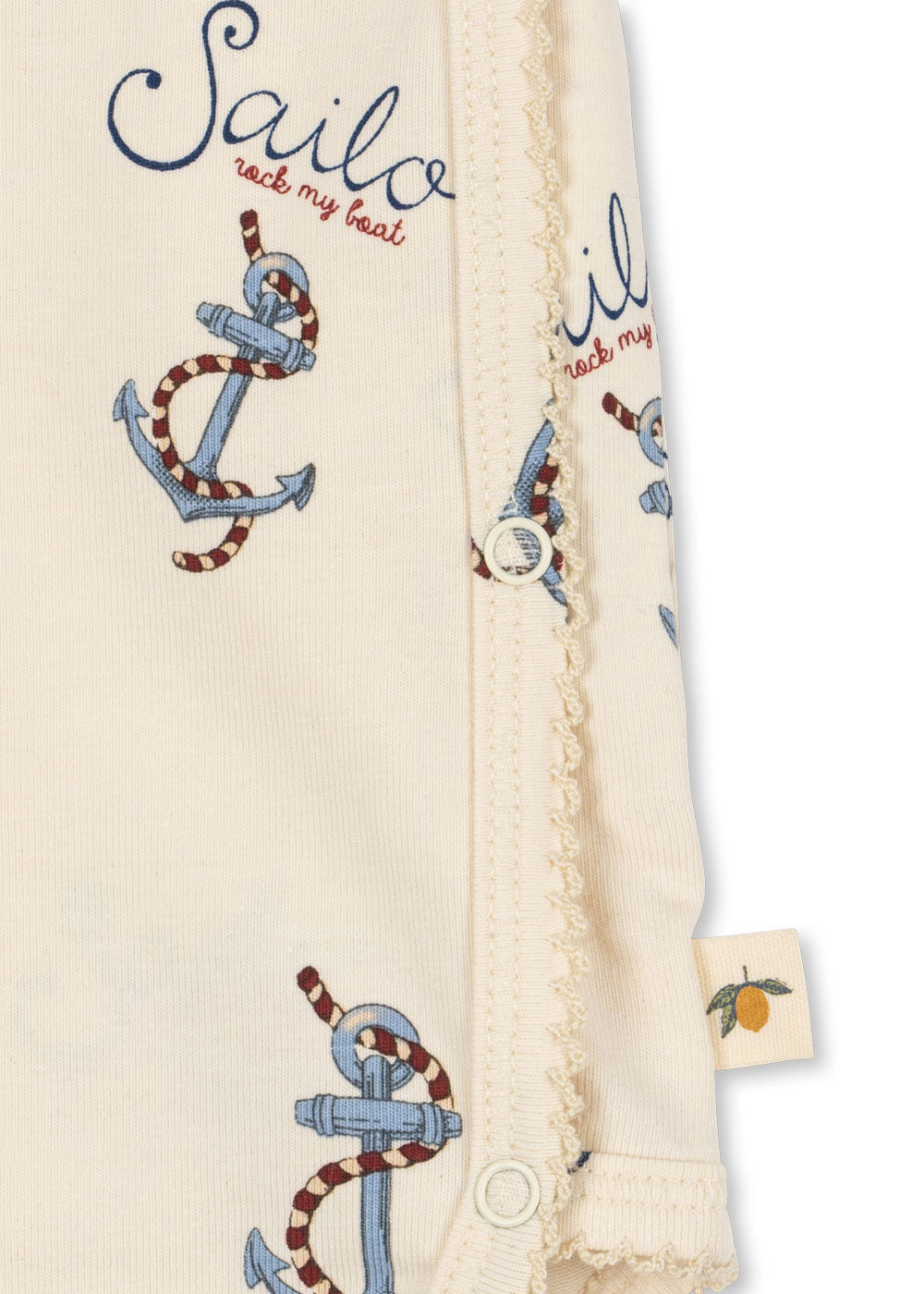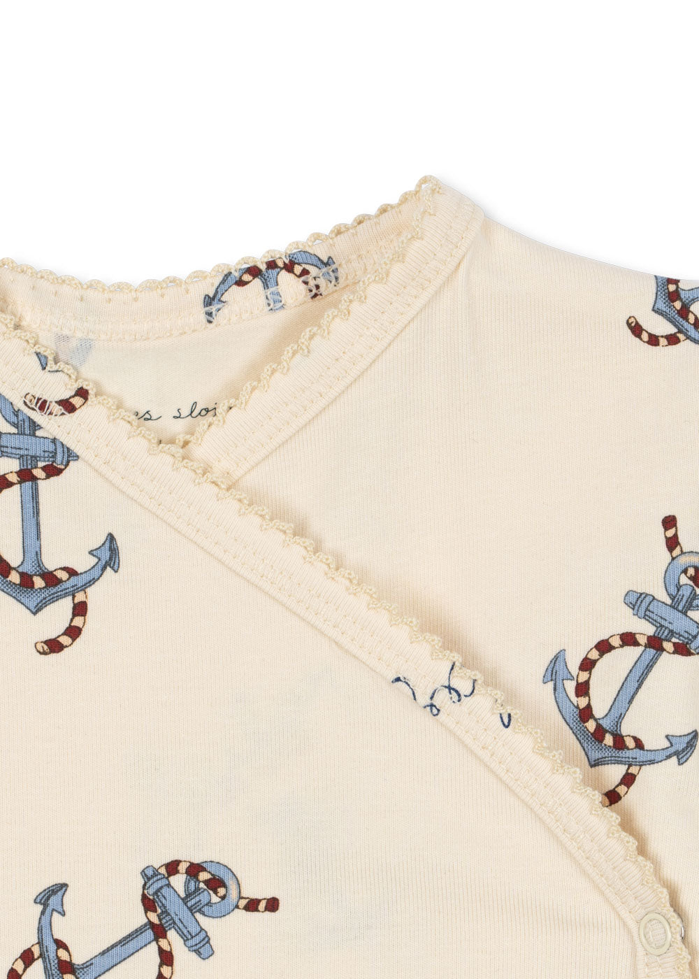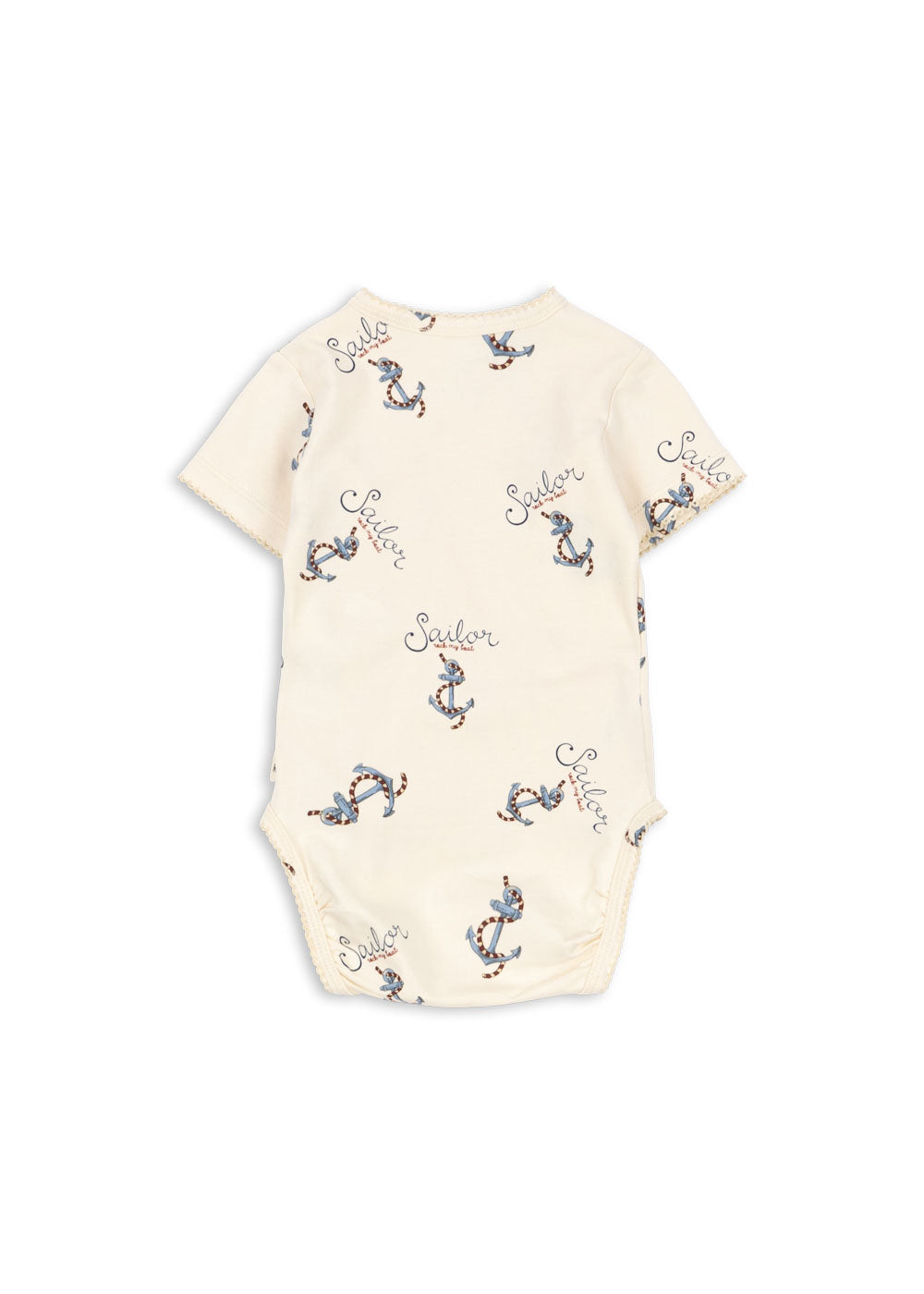 Soft short-sleeved body for newborns in a delightful organic cotton blend with a hint of stretch.