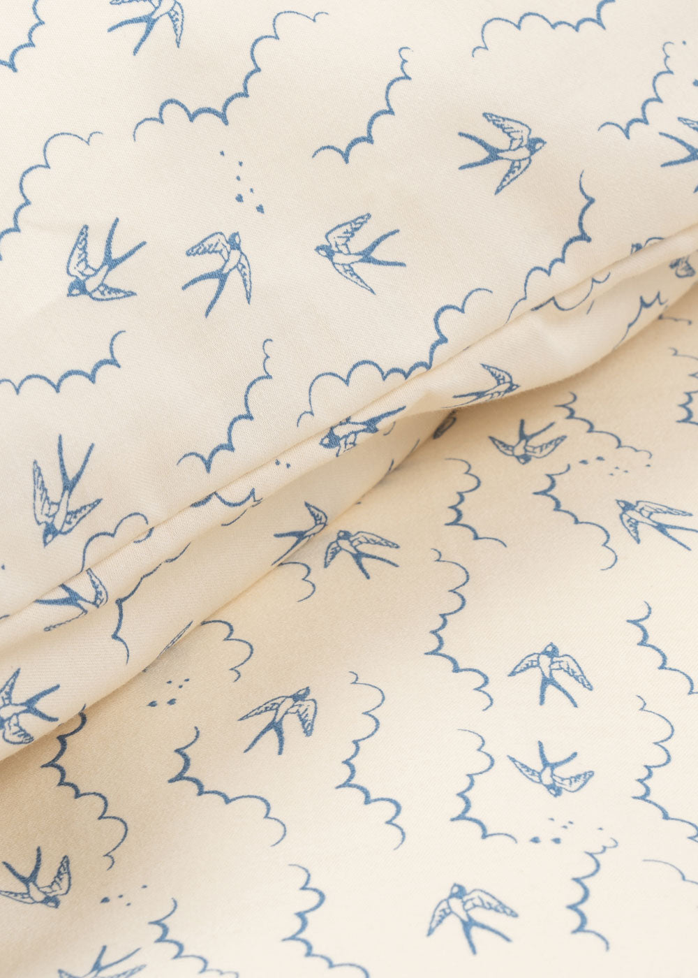 Baby bedding set with matching duvet cover and pillow case. Closes with a zipper.