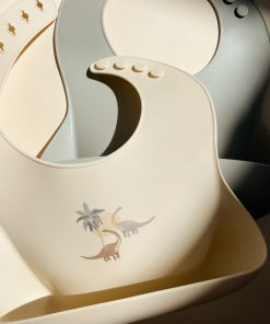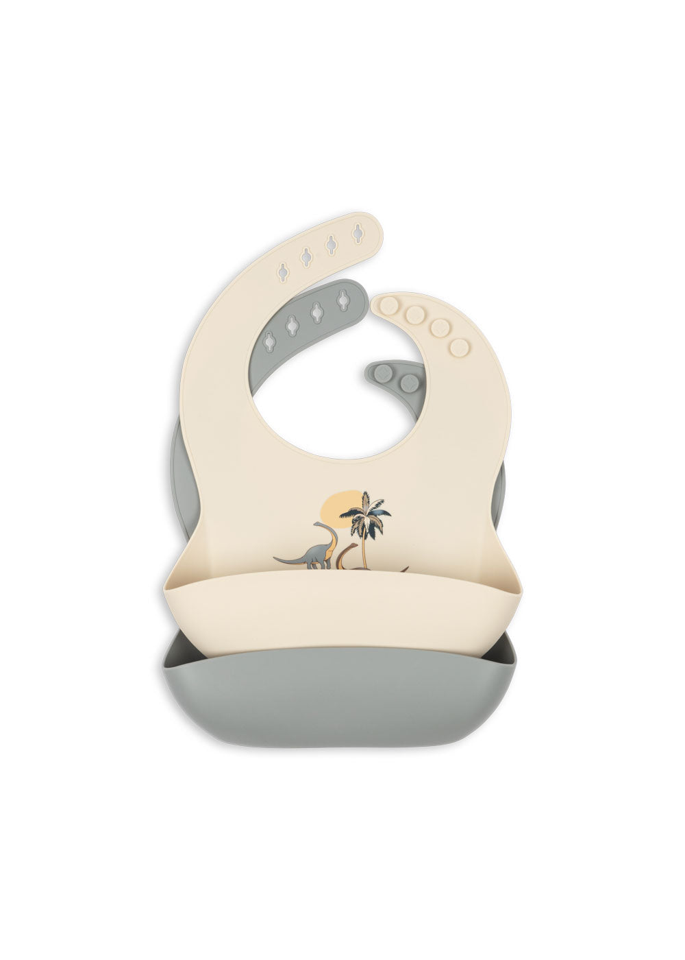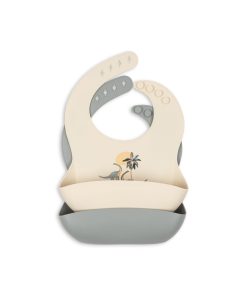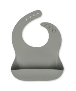 Dinner bib with a practical front ‘pocket’ that scoops up the mess during meal time