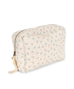 Large quilted toiletry bag designed with one big compartment and a small inside pocket. It is softly padded in order to keep your essentials safe. Closes with a zipper.