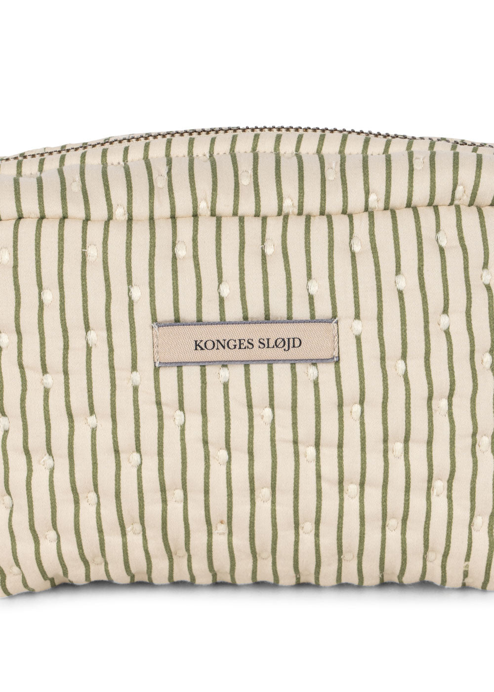 Small toiletry bag to keep your essentials neatly gathered. Closes with a zipper.