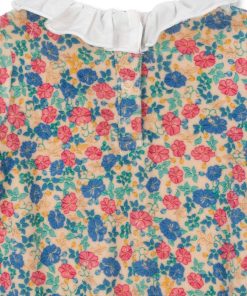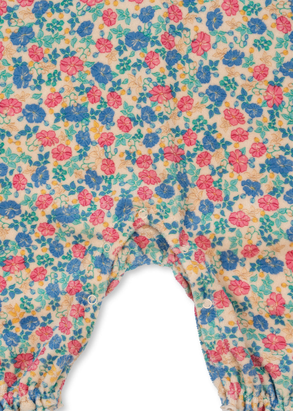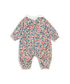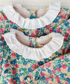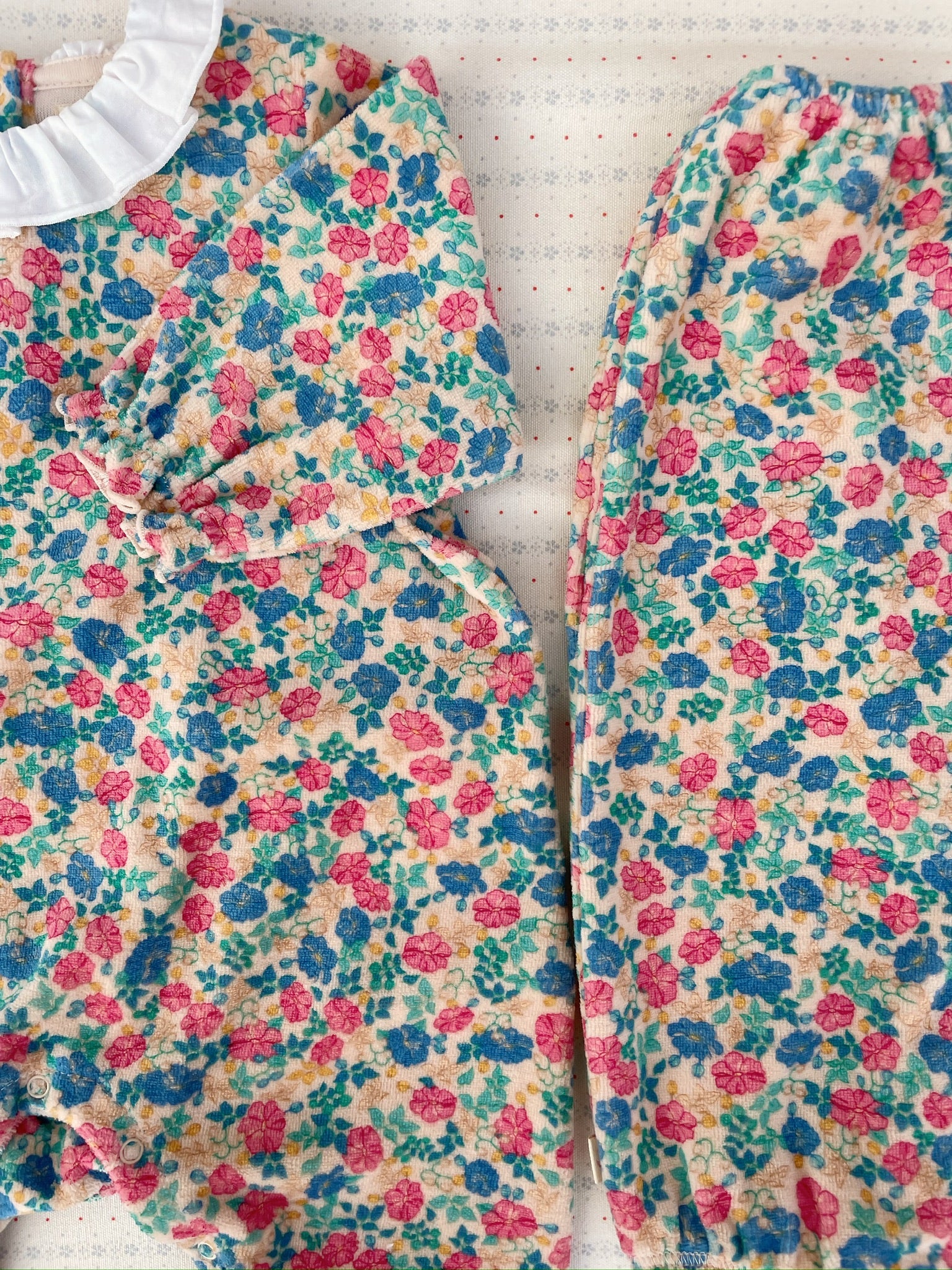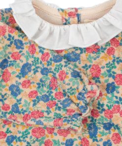 Soft velvet onesie with a decorative collar, frill details, and chest embroidery.