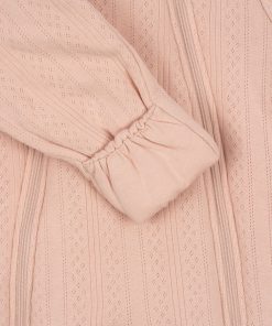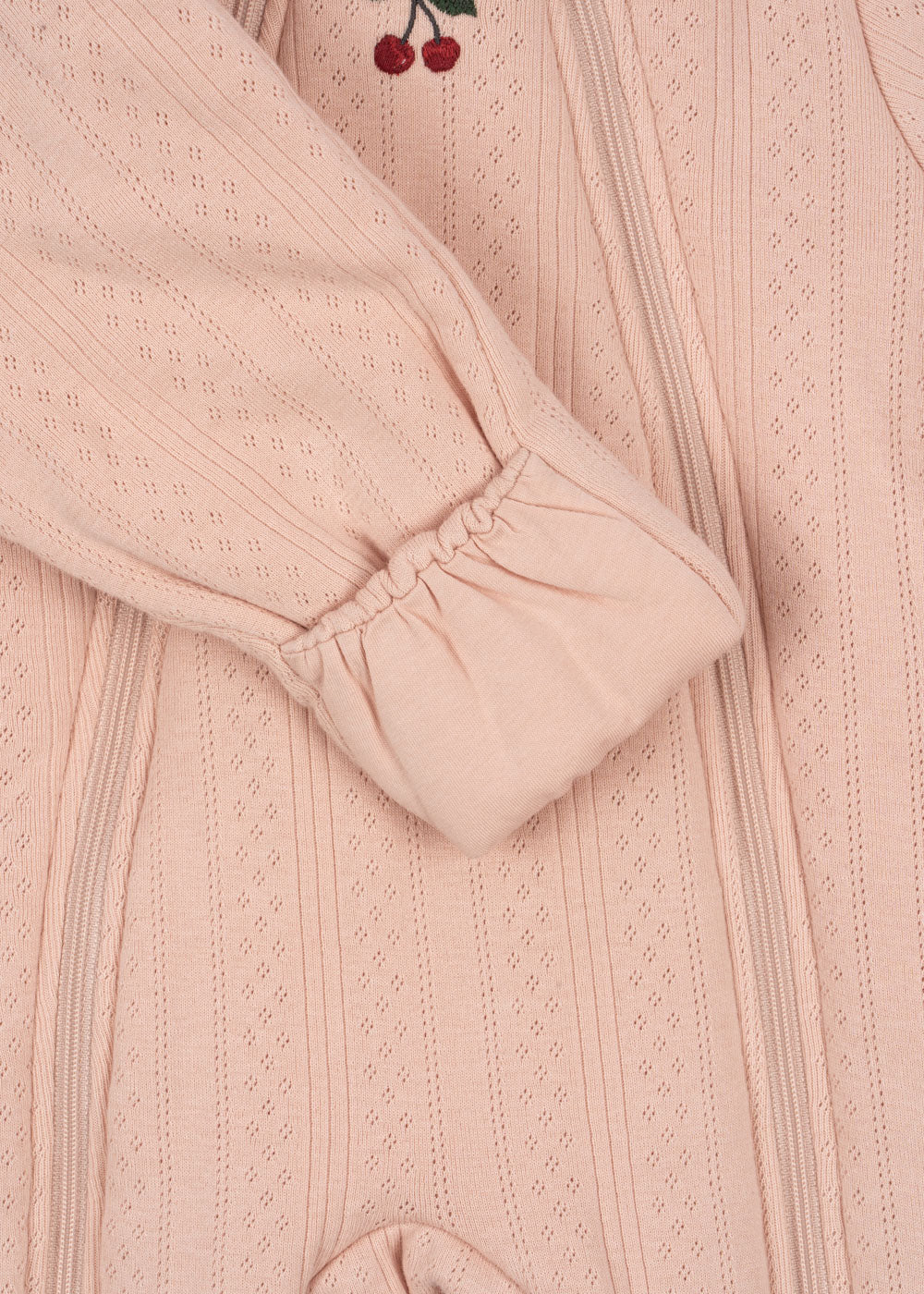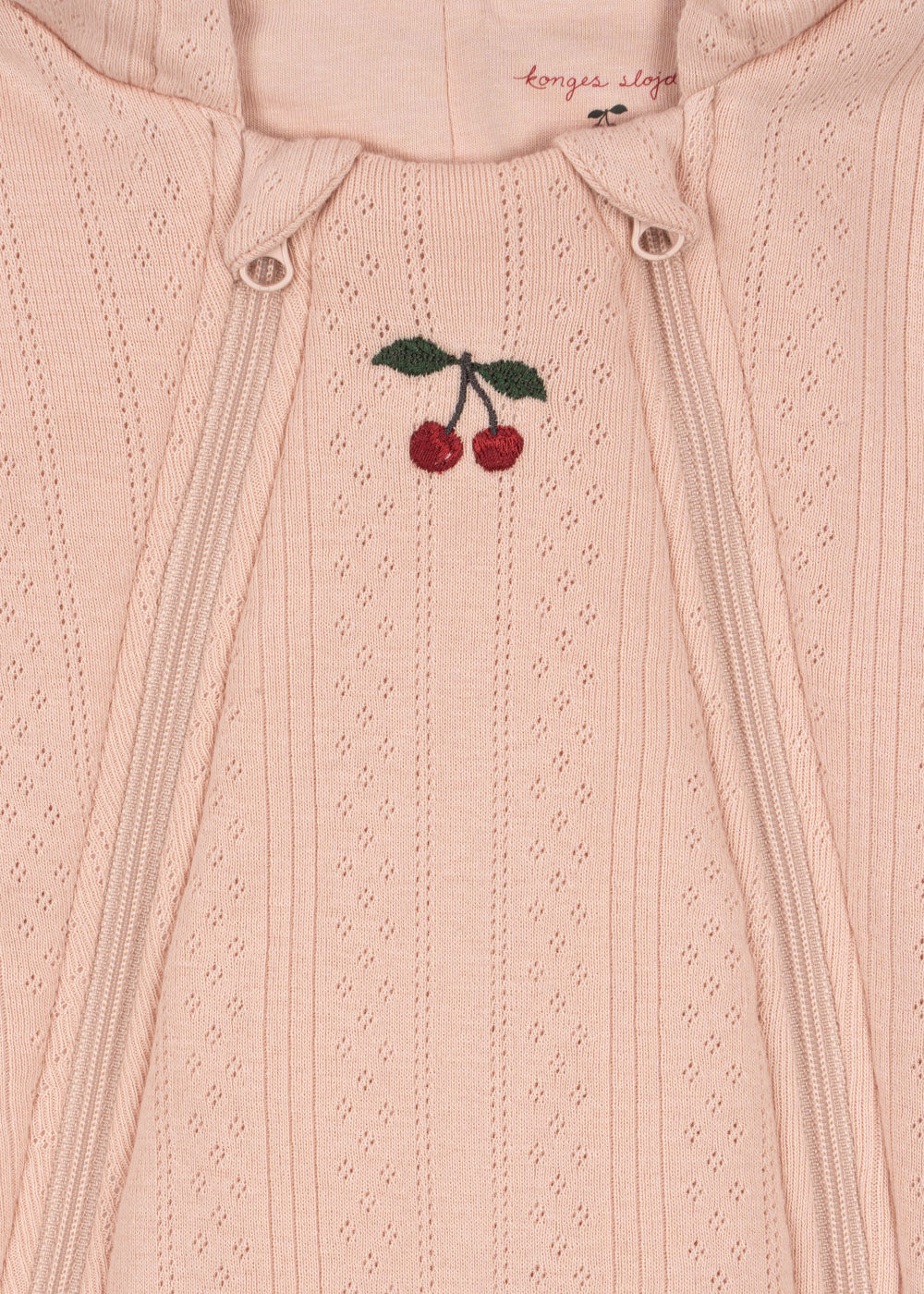 Padded onesie in decorative pointelle. Designed with a hoodie and cover for the feet.