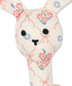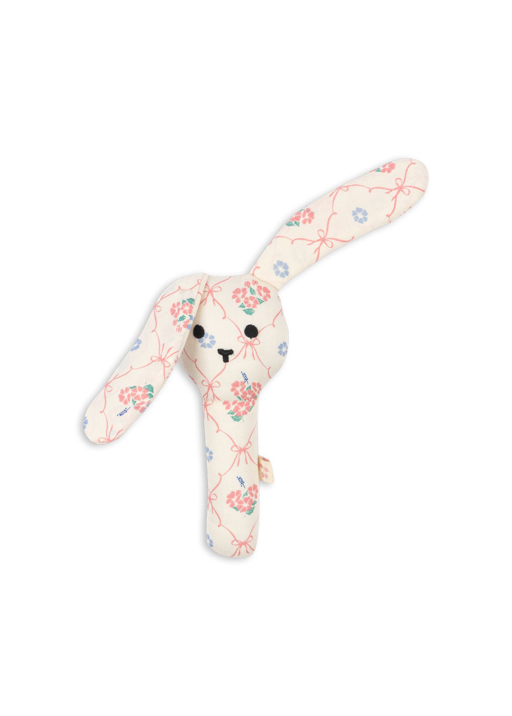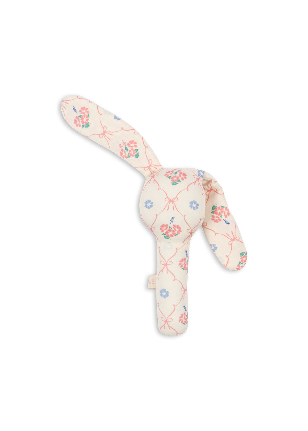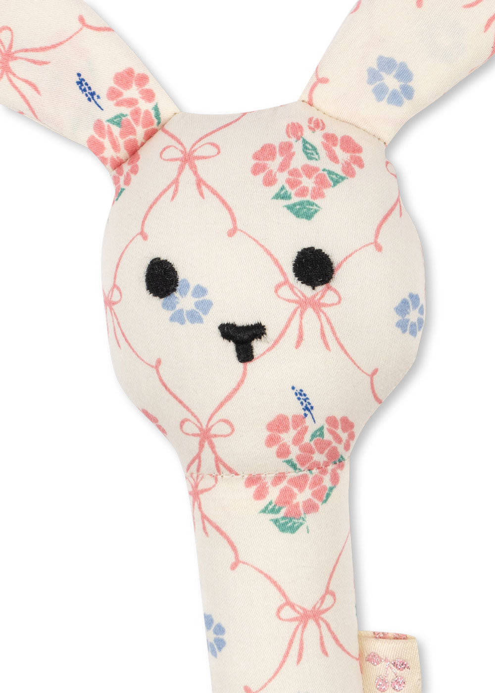 Soft hand rattle made in 100% cotton with 100% polyester filling. Designed with a small bell inside that makes a soothing sound when the hand rattle is used.