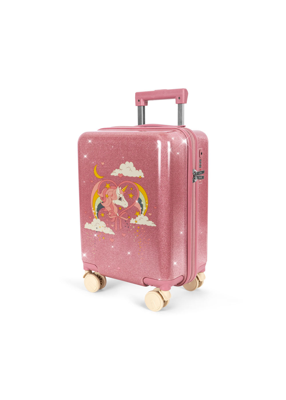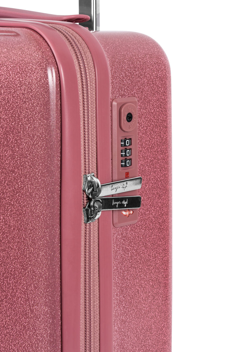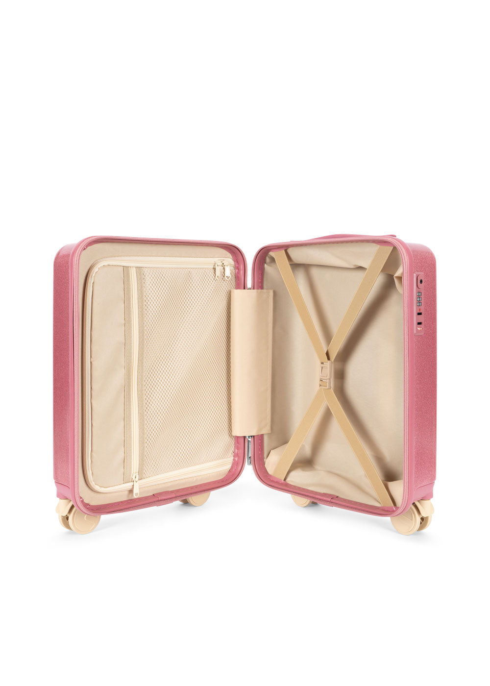 Cabin size suitcase made in a lightweight design that is suitable for carry-on luggage. Made with a hard shell, four double 360-degree spinner wheels, and an approved built-in coded TSA LOCK®.