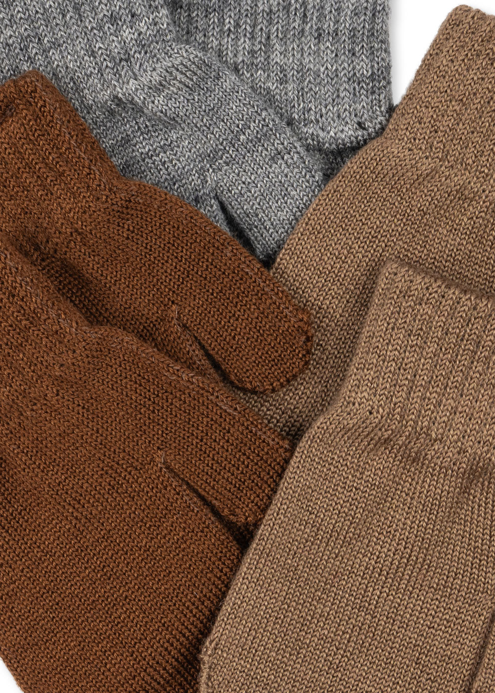 Warm mittens in a soft wool blend. Designed with a practical thumb piece and elasticated rib cuffs for a snug fit.