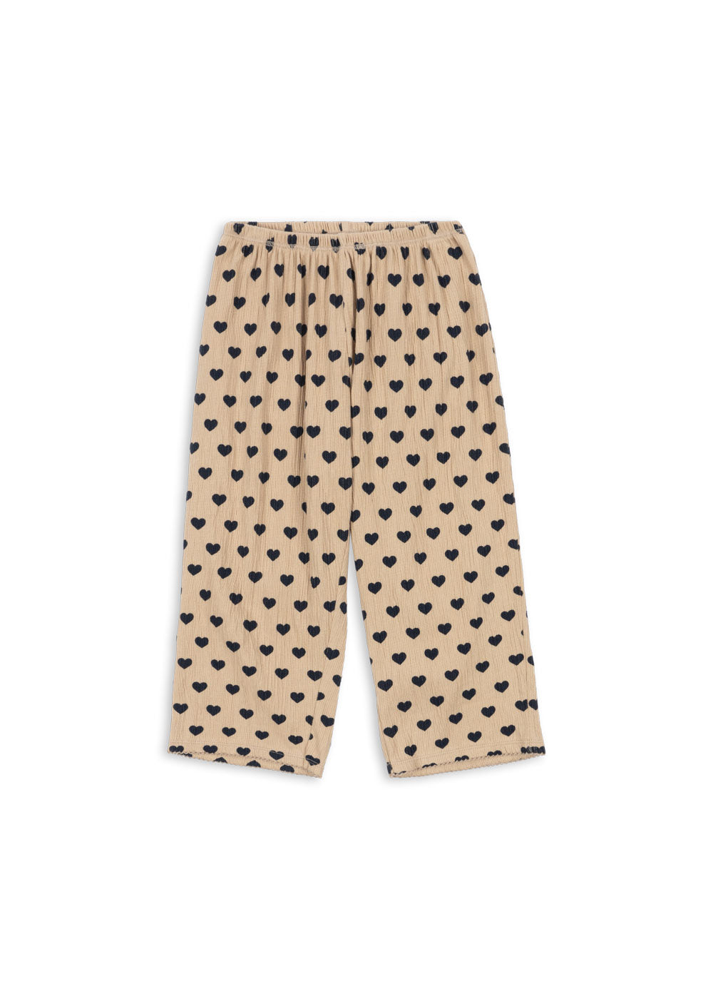 Soft pants with a loose fit and elastic waistband for a comfortable fit.