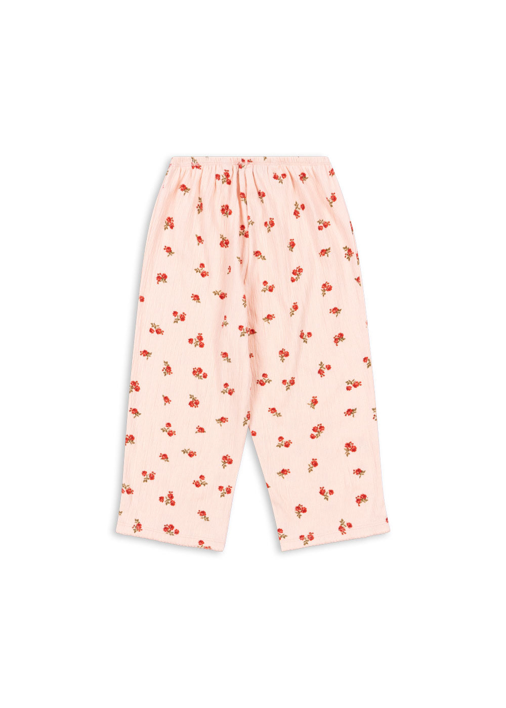 Soft pants with a loose fit and elastic waistband for a comfortable fit.