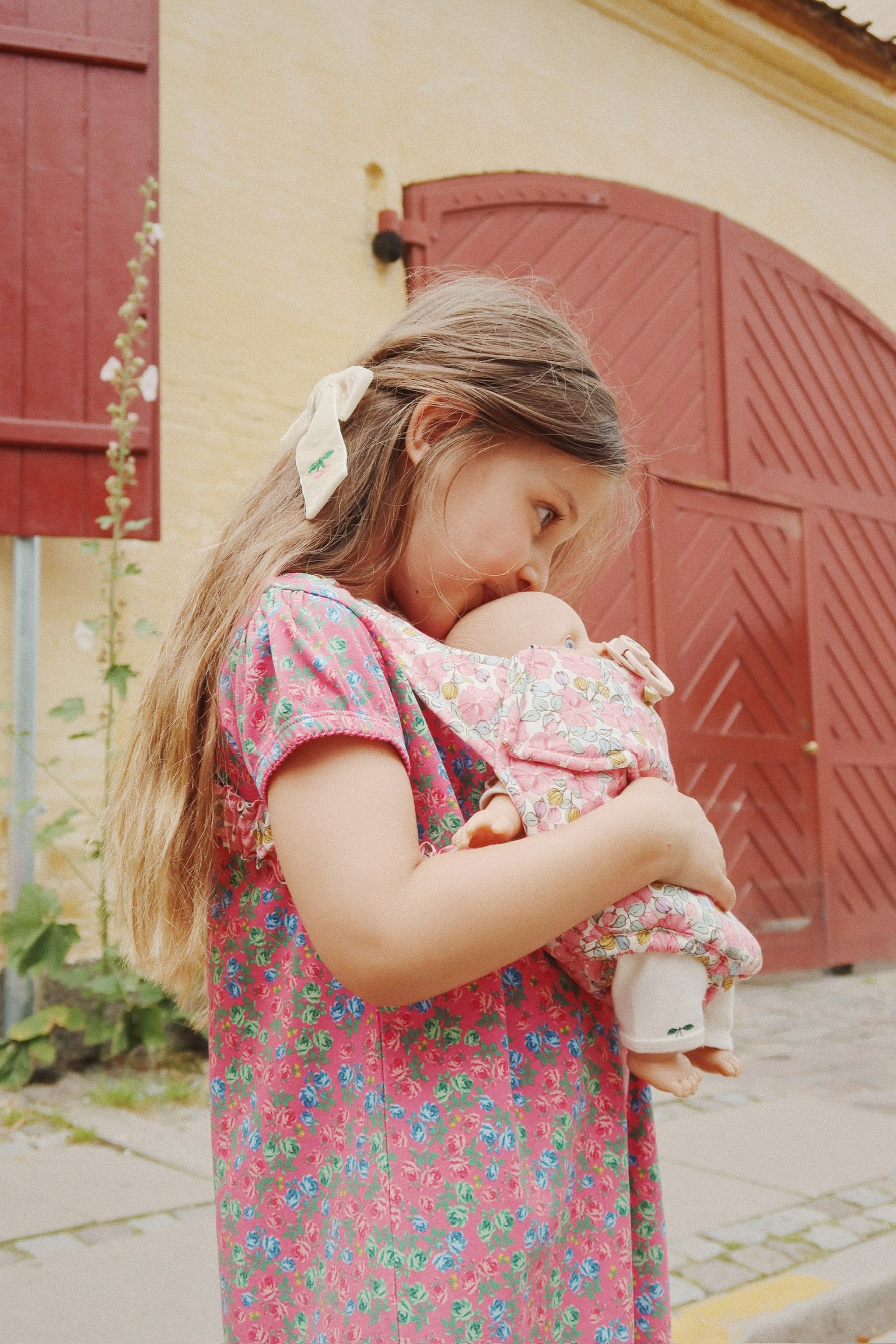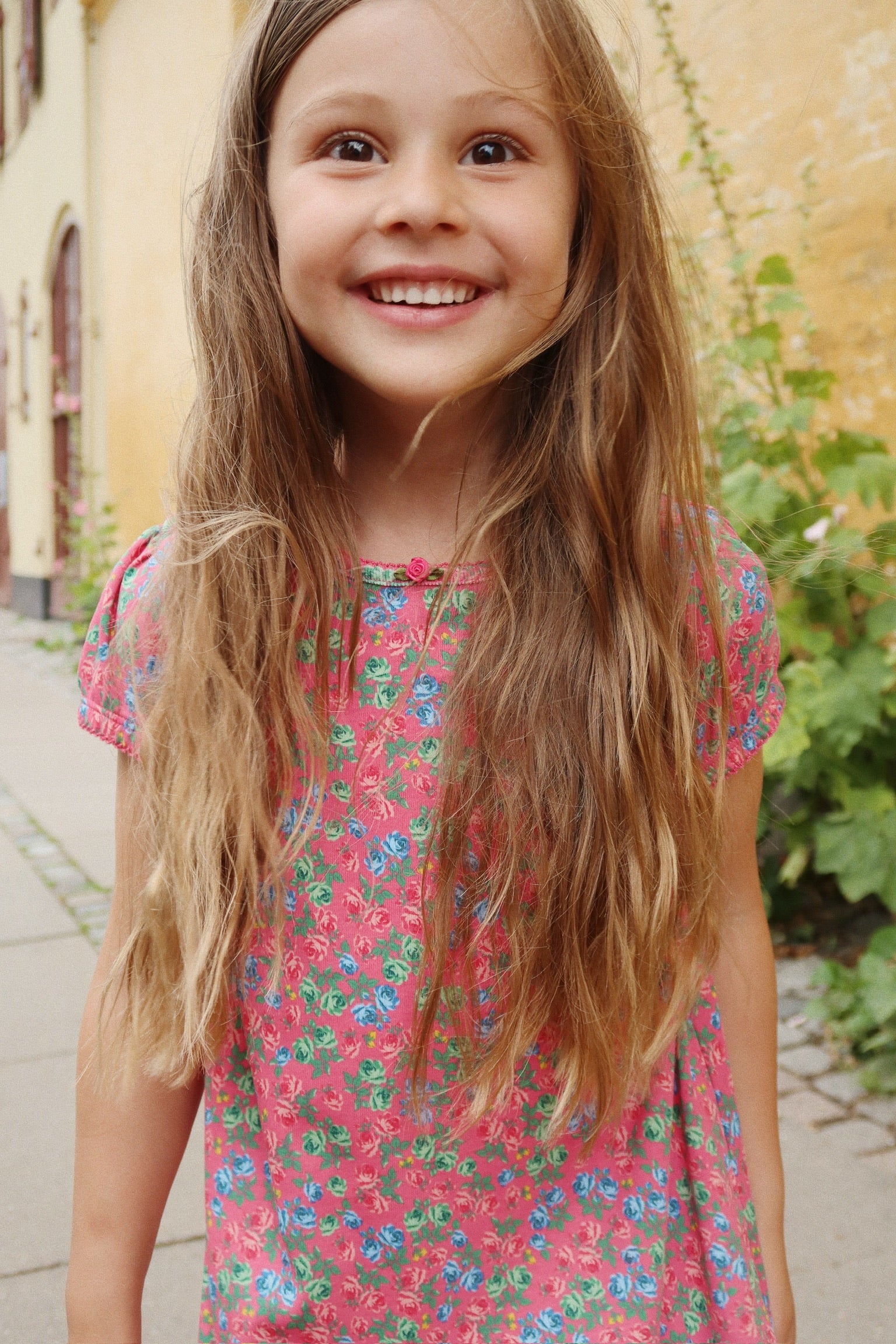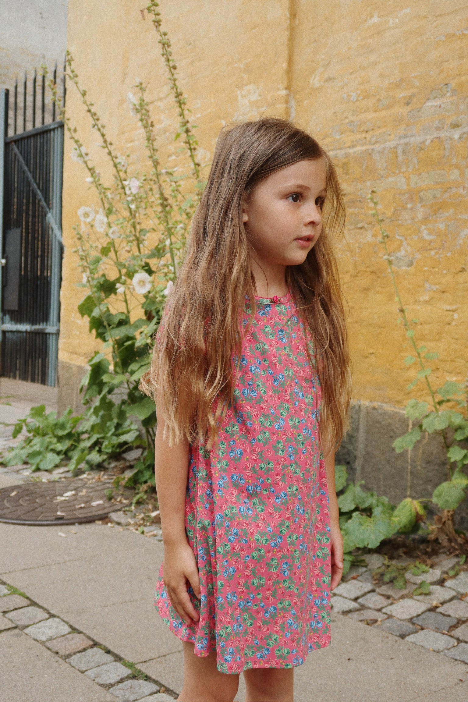 Soft organic cotton dress in a loose and slightly A-shaped silhouette.