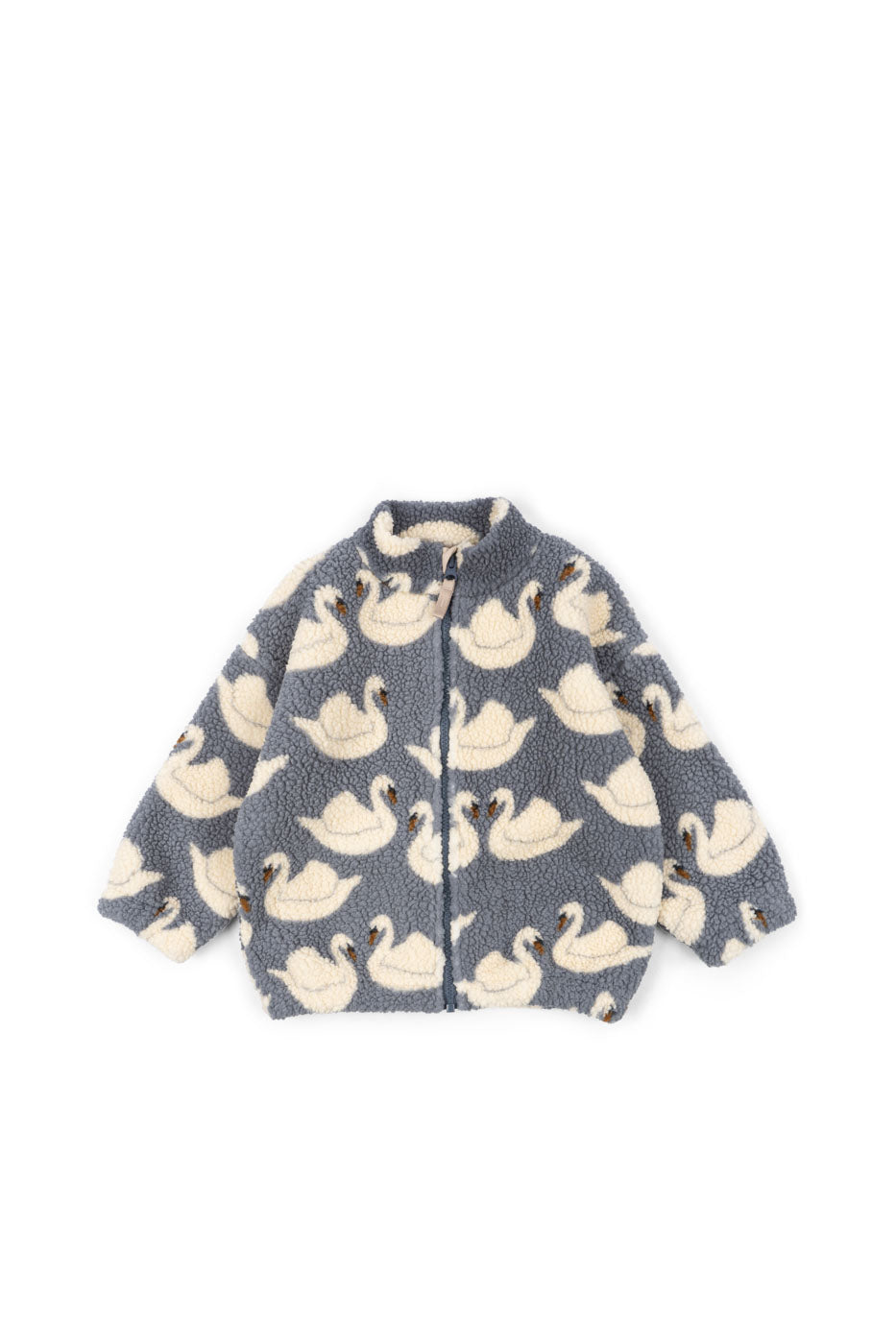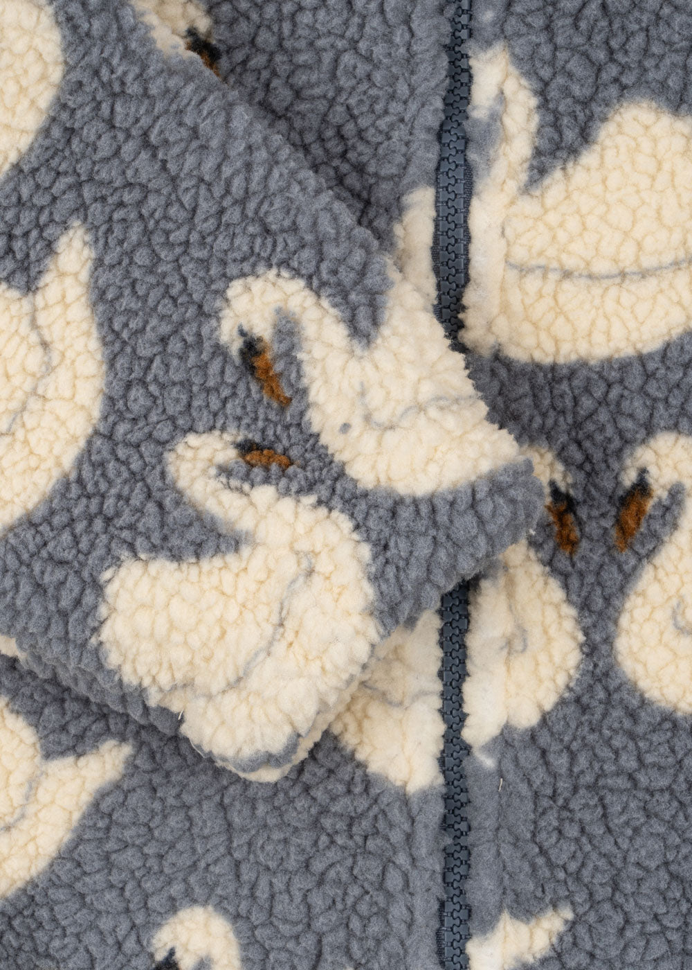 Warm pile jacket with soft and smooth inside fleece lining. Features a high collar and elasticated cuffs, and a full zipper closure in front that makes it easy to put on.