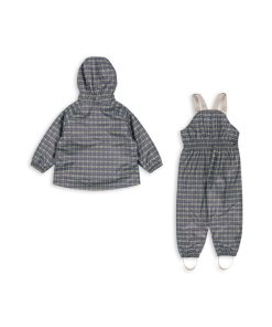 Wind-resistant and waterproof PU rain set with warm fleece lining inside. Features essential detailing like a lined, detachable hood, elastic cuffs, and welded seams for complete protection against the elements.
