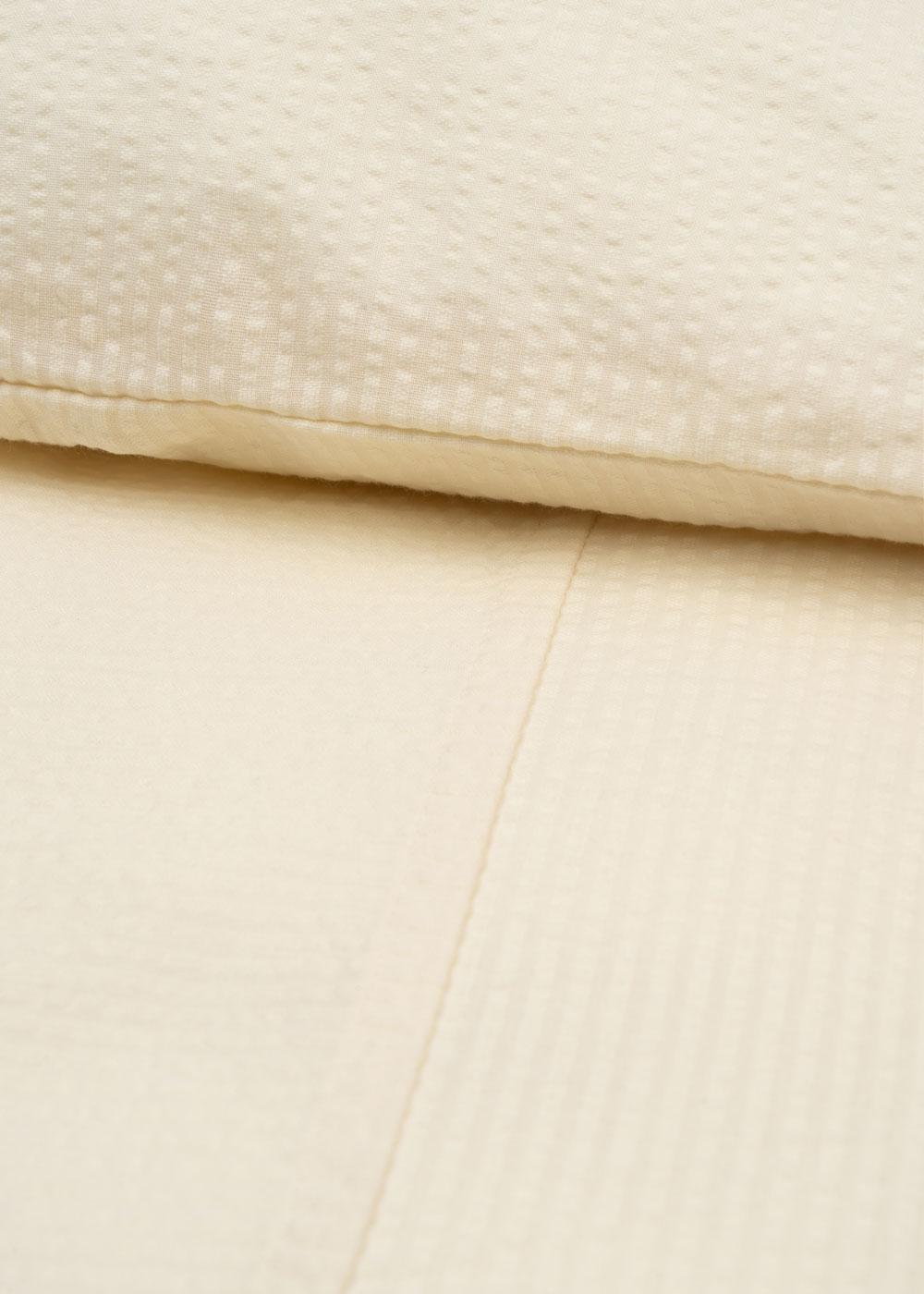 Soft bedding made from textured seersucker cotton with a comfortable feel. Features a matching duvet cover and pillow case. The duvet closes with a zipper.